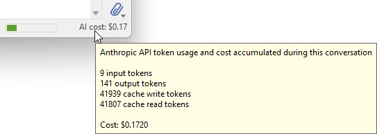 The costs are calculated based on Anthropic's pricing for API usage known at building time of Embedded Wizard Studio 15. These costs represent actual usage and are charged to your Anthropic API account.