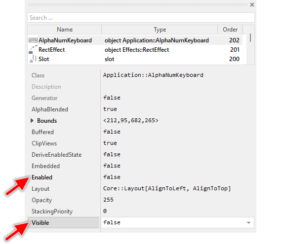 Once added to the Application component, you can freely move the Alphanumeric Keyboard instance, or you simply grab one of its corners and resize it in this way. You can control the position and the size of the component also by directly modifying its property Bounds.