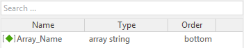 The member array is intended to store state information within a component, similarly to a variable, but unlike variables, one array can manage multiple values (items) at the same time. Every array has an explicitly specified data type (e.g. string, color, bool, ...) determining the possible content of the array and optional expressions to individually initialize the array items. Arrays are represented in Composer usually by following bricks: