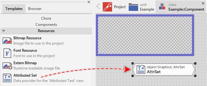 Depending on your application case, you have the option to add the Attributed Set as an embedded object directly to a GUI component or to add it as an autoobject to a unit. The first case is suitable if you want the Attributed Set being used locally within the GUI component only. The second case, in turn, is appropriate if you intend to share the Attributed Set among multiple GUI components like a kind of common resource.