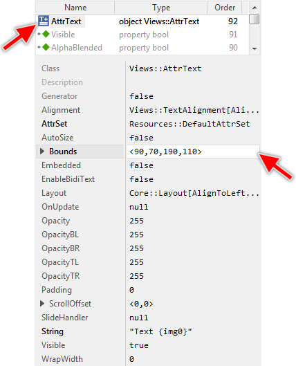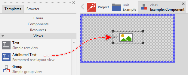 Once added, you can freely move the Attributed Text view, or you simply grab one of its corners and resize it in this way. You can control the position and the size of the view also by directly modifying its property Bounds. If you want the Attributed Text view to appear behind other views you can reorder it explicitly.