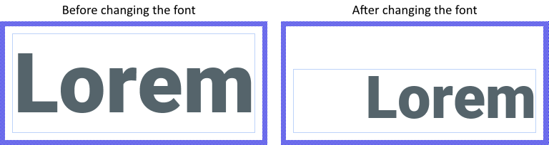You can combine AutoSize with the alignment options. For example, if you have configured the Attributed Text view to align the content at its bottom-right corner, changing the font in the associated Attributed Set object will move the top edge of the view by maintaining the left edge and the bottom-right corner fixed. This is demonstrated in the following screenshot (the thin blue borders indicate the actual view area):