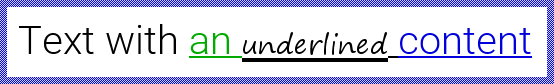 The color of the drawn line corresponds to the color specified for the affected text fragment. Similarly, the thickness of the line corresponds to the thickness of the - (hyphen) sign taken from the font used to display the text fragment. Accordingly when you mix different fonts and colors within one and the same underlined text fragment, the thickness and colors of the drawn line may vary. The following figure demonstrates it: