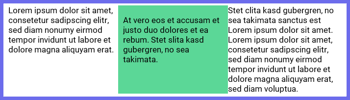 The above described column attributes {colt}, {colm} and {colb} accept an optional operand to specify a color to fill the background of the affected column. Per default, if the operand is omitted, the column is displayed with transparent background.