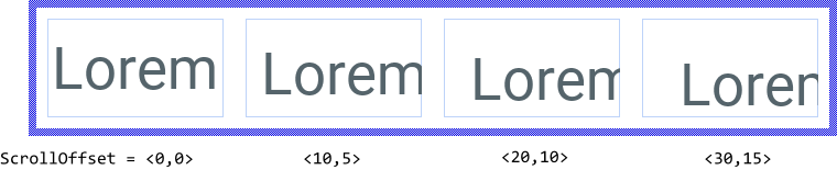 Besides the possibility to align the content within an Attributed Text view you can also scroll it pixel-wise. For this purpose use the property ScrollOffset. You can determine the vertical and the horizontal displacement individually. With positive values the content is scrolled right/down. With negative values left/up. For example (the thin blue borders indicate the view areas):