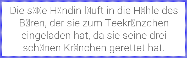 Please note, that to appear correctly, the signs used within the text should also be available in the specified fonts. In order to reduce the size of the resulting application, you have to determine for every font resource, which glyphs you intend to use at the runtime of your application. Not specified glyphs are then excluded. Trying to show them anyway will result in dummy signs, usually small boxes, displayed on the screen. For example, if the font resource doesn't include the typical German Umlaut ÄÖÜ nor the Eszett ß signs, the German text appears incomplete: