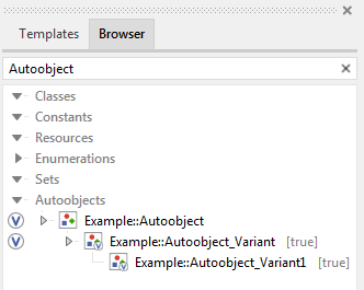 ★Within the Browser window locate the desired autoobject variant member. This can be done easily with Browser's own filter function.