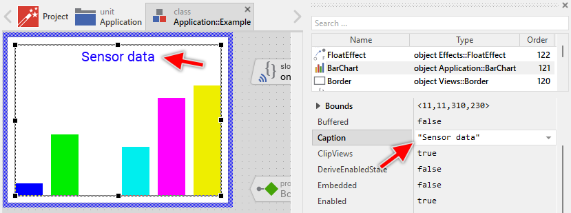 var string sensorName = ... // Let the Bar Chart display concrete details about the data source. BarChart.Caption = "Sensor: " + sensorName;
