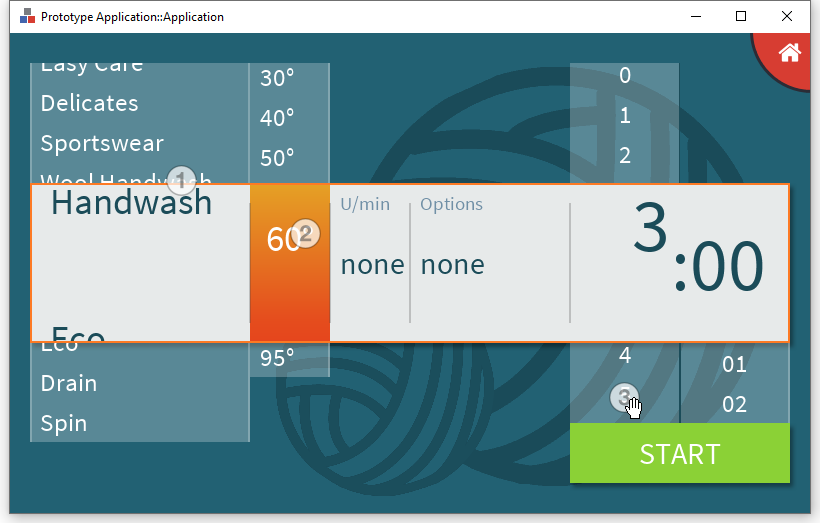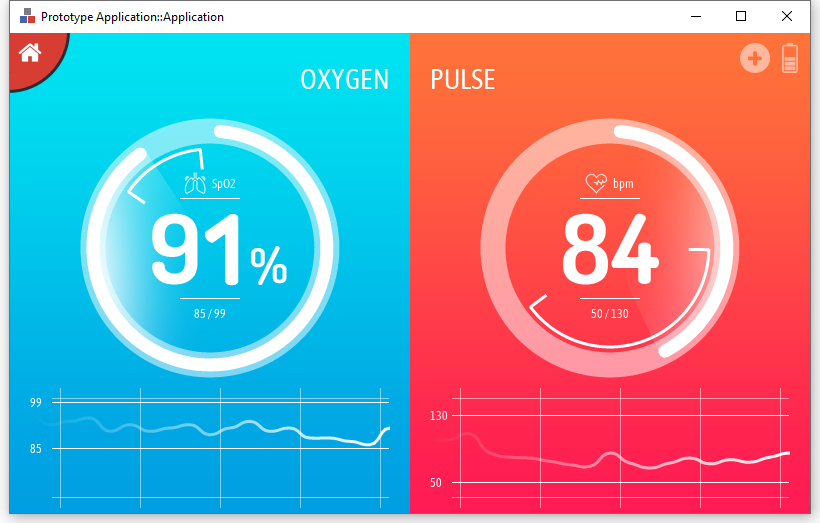 When you start the prototyping, Embedded Wizard opens the Prototyper window. You can imagine, this window represents the display in your final product. Now you can interact with the Prototyper by using the keyboard and mouse device similarly as you will do with hardware buttons or touchscreen available in your product. If the application implements animations, the animations are executed accordingly: