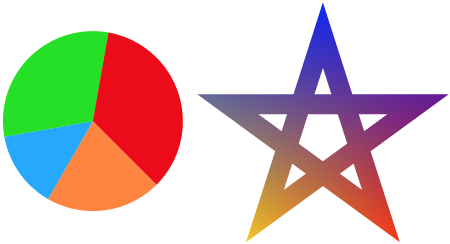 Embedded Wizard supports vector graphic views to fill, stroke, fill with gradient and stroke with gradient paths, Bézier curves, arcs, etc.. Gradients can be linear or radial and be composed of multile color stops. To conveniently compose and store the path information at the runtime dedicated Path Data and Arc Path Data objects are available. The path information can also be provided as SVG string. The vector graphic rasterization routines of Embedded Wizard are performed with or without anti-aliasing: