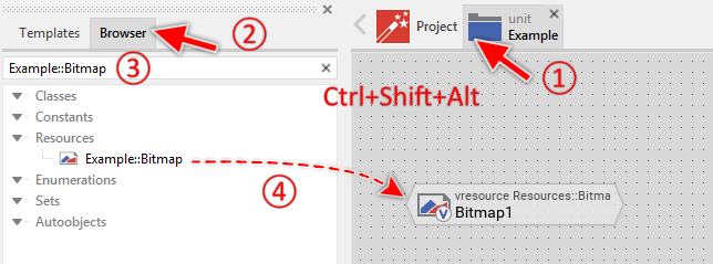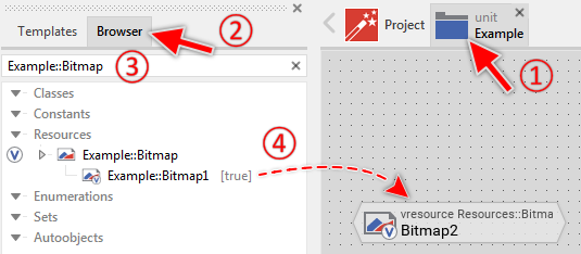 ★Within the Browser locate the desired bitmap resource member. This can be done easily with Browser's own filter function.