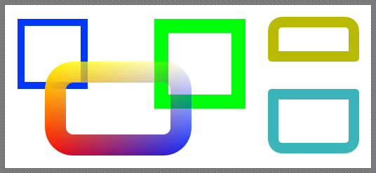 To specify the color of the Border view you change its property Color. Alternatively you can configure the border to be stroked with a color gradient. For this purpose you specify the colors for the four corners (top-left, top-right, bottom-right and bottom-left) individually by using the corresponding properties ColorTL, ColorTR, ColorBR and ColorBL. The gradient colors are interpolated linearly between the specified values. Using color values with alpha < 255 causes the border to appear semi- or even transparent. For example: