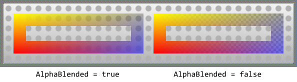 The visibility of the Border view is controlled primarily by the property Visible and the specified color values. Per default the views appear alpha-blended over the contents lying behind them unless you explicitly disable this mode by setting the property AlphaBlended to the value false. In such case, the border will overwrite the contents in the background. For example: