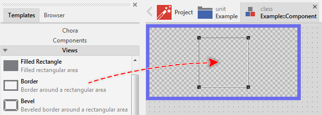 Once added, you can freely move the Border view, or you simply grab one of its corners and resize it in this way. You can control the position and the size of the view also by directly modifying its property Bounds. If you want the Border view to appear behind other views you can reorder it explicitly.