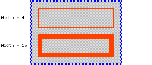 Per default borders are stroked with 1 pixel thickness. This setting can be controlled by the property Width. For example: