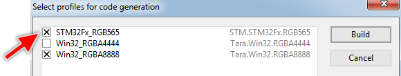 With this dialog you can select several profiles to generate the code at once. This is in particular useful in projects containing many profiles when after making a modification in the project you want new code being generated for all of your supported target systems. This dialog appears when activating the command Build in batch mode ...: