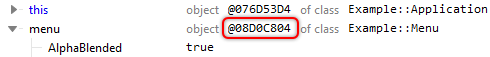 If the object was created dynamically by using the new operator, then the object is identified by a unique 32-bit hexadecimal number starting with the @ (at) sign. As long as the object exists this number remains valid: