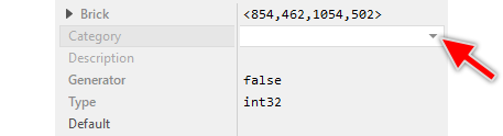 To inspect or modify the value of a Category attribute, select first the affected property member. Thereupon, the attribute is listed in the middle area of Inspector. Please note the available assistant you can activate by clicking on the button