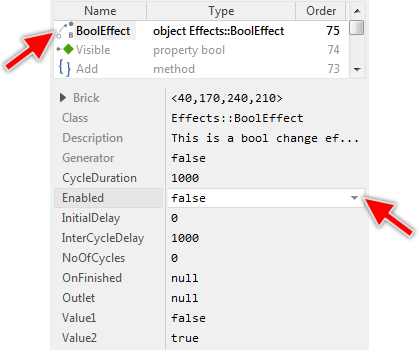 Please note, that this Effect object is optimized to handle with bool values only. Other data types are supported by the Effects Change int32, Change float, Pulse color, Move point and Move and resize rect.