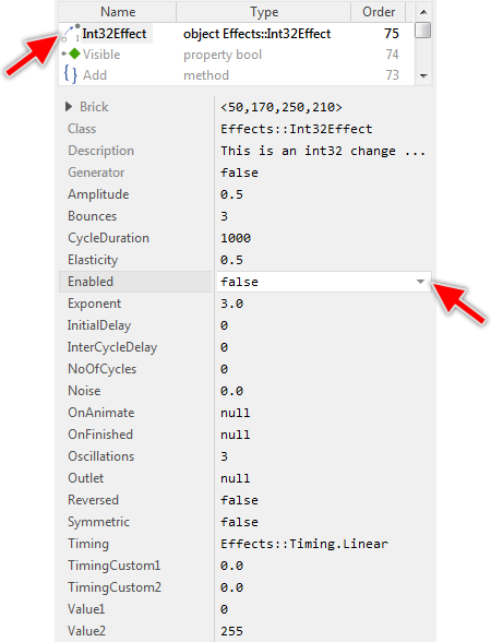 In the most cases it is sufficient to connect the Effect object with the property you intend to animate by using the Outlet technique described in the section above. This approach is very simple and convenient. It is however limited to a connection established with exact one int32 property.