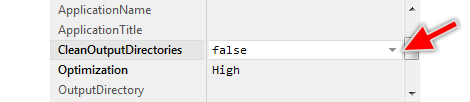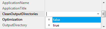 To inspect or modify the value of an CleanOutputDirectories attribute, select first the affected profile member. Thereupon, the attribute is listed in the middle area of Inspector. Please note the available assistant you can activate by clicking on the button