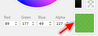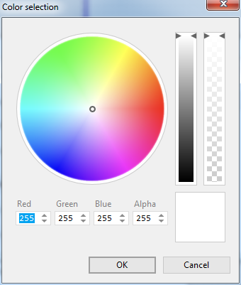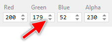 To specify the color more accurately you can select the numeric values for the respective color components directly by using the four spinner controls at the bottom of the dialog: