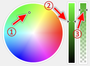 ★Click within the second (right) slider and drag the mouse to determine the opacity of the color.