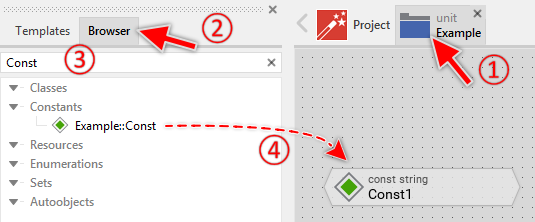 ★Within the Browser window locate the desired constant member. This can be done easily with Browser's own filter function.