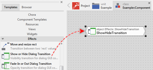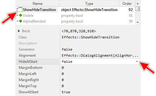 The following sections are intended to provide you an introduction and useful tips of how to deal with the Show or Hide Dialog Transition object. For the complete reference please see the documentation of the Effects::ShowHideTransition class.