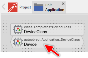 With the above steps you rename the class intended to accommodate the implementation of the Device Interface. This class is additionally accompanied by an autoobject representing the instance of the Device Interface in question. Through this autoobject the GUI application can access and use the Device Interface. Therefore after renaming the class you should also adapt the name of this autoobject to be obvious. Per default this name starts with Device. Rename the autoobject so that it addresses its real function (e.g. NetworkDevice). For this purpose: