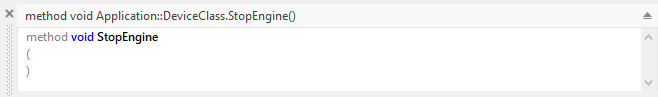 The possibility to return a value is an interesting feature for all Commands intended to query the device status or to read any other information stored in the hardware or managed by the external software. For example, a GUI application controlling a pump could implement a Command to query whether the pump is actually running or not. Accordingly, the respective Command method would be declared to return a bool value. It would return true if the pump is active and false if it doesn't. The caller of the method (e.g. a GUI component) can thereupon evaluate the returned value and update its appearance according to the current status of the pump. The following figure shows the possible declaration of such IsPumpActive method: