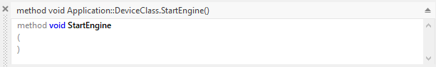 Embedded Wizard, however, can understand the syntax of its own programming language Chora only. The unique possibility to integrate the native code with the platform independent Chora is thus to enclose it explicitly within a native statement. Then, during Code Generation the native code is simply taken over and mixed together with all the other generated code. The following example demonstrates the implementation of a Command method intended to start an engine: