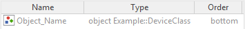 // This is an object without any presets. // // $rect determines the position of the brick inside Composer window. $rect <10,10,210,50> object Core::KeyPressHandler KeyHandler; // This is an object containing initialization values for two \ // properties 'Voltage' and 'Current'. // // $rect determines the position of the brick inside Composer window. // $output imposes the code generation of the object regardless of its \ // usage inside the project. $rect <10,10,210,50> $output true object Example::DeviceClass Device { preset Voltage = 230; preset Current = 10.5; } // This is an object inherited from a base class. Its class name is \ // determined in the base class and can't be changed in descending \ // classes. The property 'Color' of this object is re-initialized with \ // a value '#FFFFFFFF'. // // $rect determines the position of the brick inside Composer window. inherited object Background { preset Color = #FFFFFFFF; }