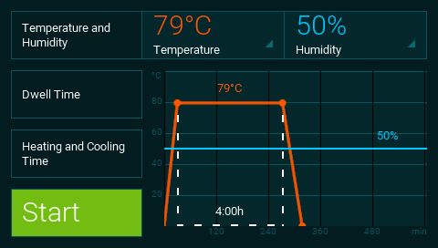 ★ClimateCabinet - The ClimateCabinet demo shows the implementation of a control panel for a climatic exposure test cabinet. The user can define a heating time, a nominal temperature and humidity, a dwell time and the final cooling time.