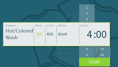 ★WashingMachine - This demo shows the implementation of a washing machine with a couple of fancy scrollable list widgets to choose the washing program and parameters. The speciality of this sample application is the magnification effect of the centered list items and the soft fade-in/fade-out effects.
