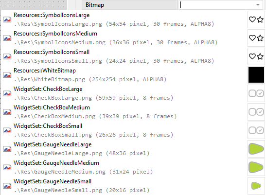 ★Adding bitmap resources: Dragging one or several *.bmp, *.png, *jpg or *.gif files from Windows File Explorer into the Composer (or Inspector) with an opened Unit creates corresponding bitmap resources automatically.