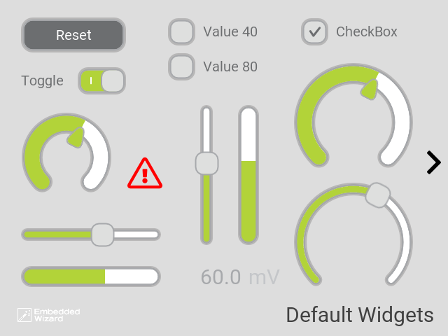 With Embedded Wizard version 9.00 we introduce a new concept of Widgets: The Mosaic framework contains now a set of commonly used widgets, that can be used as foundation to create interactive GUI applications. Almost every widget is able to react to user inputs performed either via touch screen or keyboard. A few of the widgets are intended to display information only.