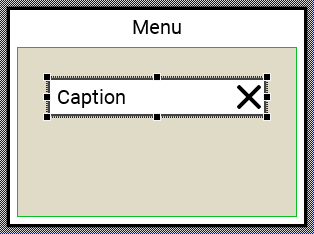 Component templates are intended to create widgets which can be modified and adapted to your particular design expectations. In the following sections you will learn how to do this. Originally, if not yet modified, the Exit Menu Item will appear as white rectangle with item caption text. The cross image on the right indicates that the menu will be left (exit) when the item is activated. Our intention is to keep the component templates as minimalistic as possible so they don't distract you with less important design details.