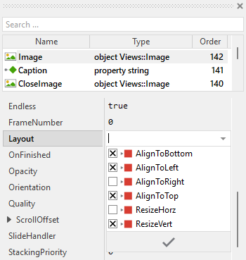 If not needed, you can delete the per default existing views Background, Border, CaptionText or CloseImage. Doing this, please don't forget to also remove all references to the deleted views from the implementation of the UpdateViewState and GetMinimalSize method. Otherwise you will get error messages next time the Composer contents is reloaded. To avoid this error message we recommend to perform the steps in following order: