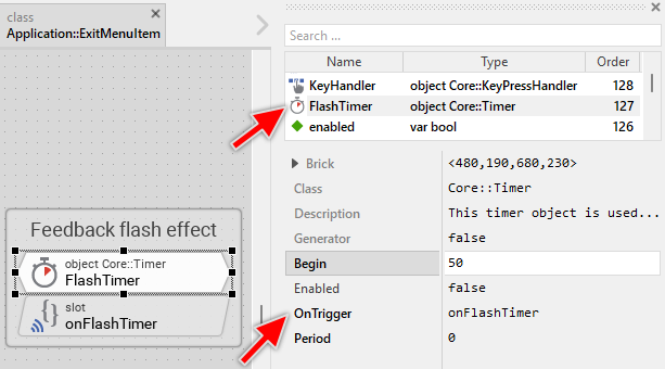 The flash effect is implemented using the Timer object named FlashTimer. This timer is configured with a duration (50 milliseconds per default) that determines how long the item should appear in the pressed state: