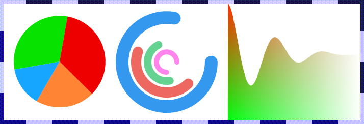 The Mosaic class Views::FillPath implements a graphical object specialized to display filled polygons from provided path data. A single path can be composed of line segments, Bézier curves and elliptical arcs. Several paths can be combined together in order to describe complex shapes. This so-called Filled Path view can be used to compose the appearance of a GUI component, in particular to display pie charts, histograms, polygons, circles, etc. The following screenshot demonstrates few examples of how Filled Path views appear in the canvas area of Composer (and accordingly on the screen in your target device):