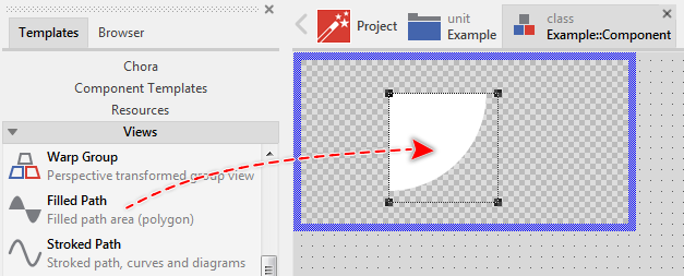 To add a new Filled Path view just at the design time of a GUI component do following: