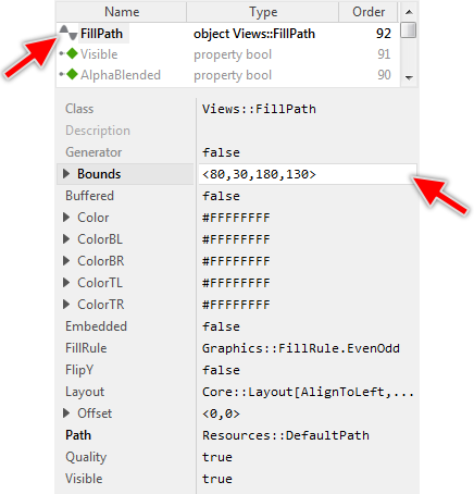 Once added, you can freely move the Filled Path view, or you simply grab one of its corners and resize it in this way. You can control the position and the size of the view also by directly modifying its property Bounds. If you want the Filled Path view to appear behind other views you can reorder it explicitly.