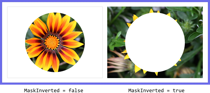 If desired, the effect of the mask bitmap can be inverted. Doing this, the Filter Image view will display only those image pixel which are not fully opaque in the mask bitmap. This function is controlled by the property MaskInverted and the following figure demonstrates it. Please note, that pixel lying outside the mask bitmap are considered as transparent. Consequently, when MaskInverted is true, the Filter Image view will expose all image pixel which are found beyond the borders of the mask: