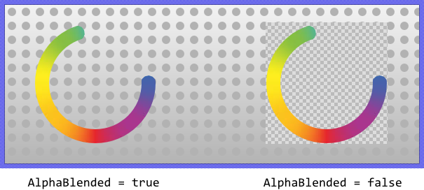 Per default the views appear alpha-blended over the contents lying behind them unless you explicitly disable this mode by setting the property AlphaBlended to the value false. In such case, the image resulting from the filter effect will overwrite the contents in the background. For example: