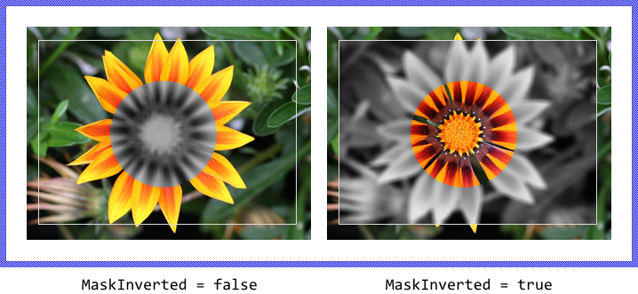 Please note, when using blur and mask effects simultaneously, the order in which these are applied is significant. The mask can be applied either on the already blurred content or the blur filter is applied on the previously masked image. For more details see the property MaskBeforeBlur explained in the section Configure the mask filter.