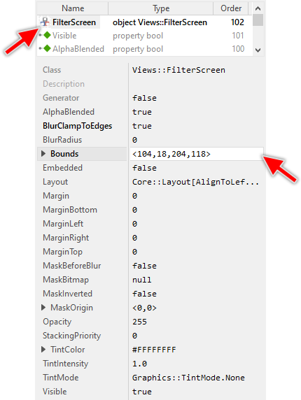 Once added, you can freely move the Filter Screen view, or you simply grab one of its corners and resize it in this way. You can control the position and the size of the view also by directly modifying its property Bounds. If you want the Filter Screen view to appear behind other views you can reorder it explicitly.