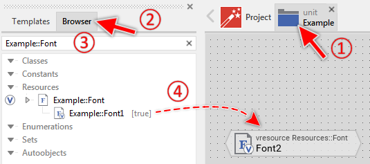 ★Select the found font resource member in the Browser window.