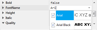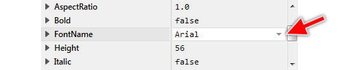 To inspect or modify the value of a FontName attribute, select first the affected font resource member. Thereupon, the attribute is listed in the middle area of Inspector. Please note the available assistant you can activate by clicking on the button