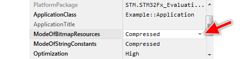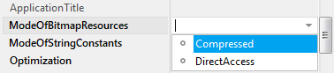 The attribute ModeOfBitmapResources determines the mode how bitmap resources are stored in the code segment (ROM or flash memory) in the target device. Accordingly it affects the memory allocation and the resource management in Embedded Wizard Graphics Engine. The attribute can assume one of the following values: